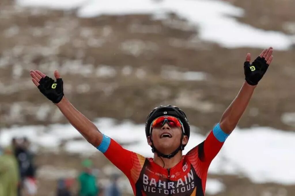 "J'ai connu un Giro difficile sur le plan personnel. Gagner est le fruit de beaucoup de travail et de sacrifices. C'était le bon jour pour lever les bras", a dit le coureur de la Bahrain.