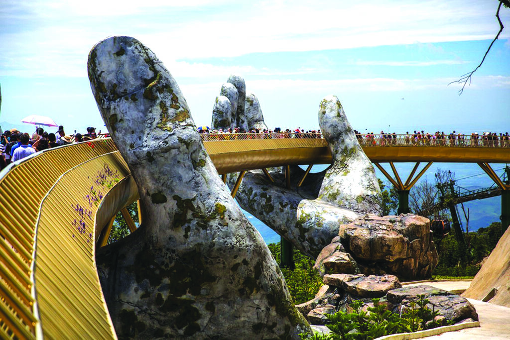 | Le pont d’Or dans la zone touristique des Bà Nà Hills, à Dà Nang (Centre). |