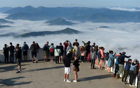 | Des touristes admirent la vue depuis le sommet de La Rhune, le 24 août à Sare, dans le Sud-Ouest de la France. |