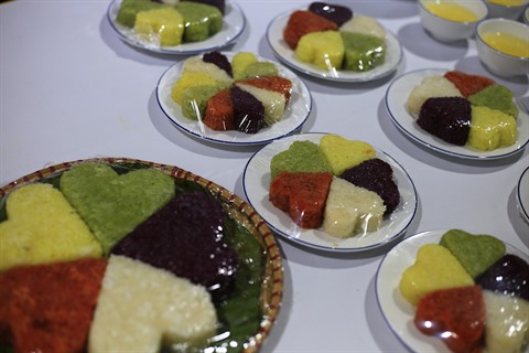 | Le "xôi ngu sac", riz gluant aux cinq couleurs, une spécialité culinaire du Vietnam. |