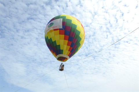 | En montgolfière, perchés à 400 ou 900 mètres d'altitude, les touristes bénéficient d'une vue panoramique du district de Ba Vi. |