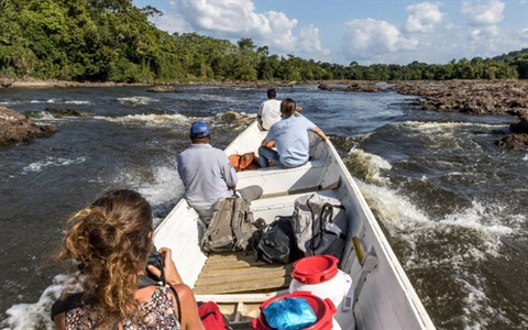 | Des touristes visitent le fleuve Maroni en Guyane, le 28 novembre 2016 |
