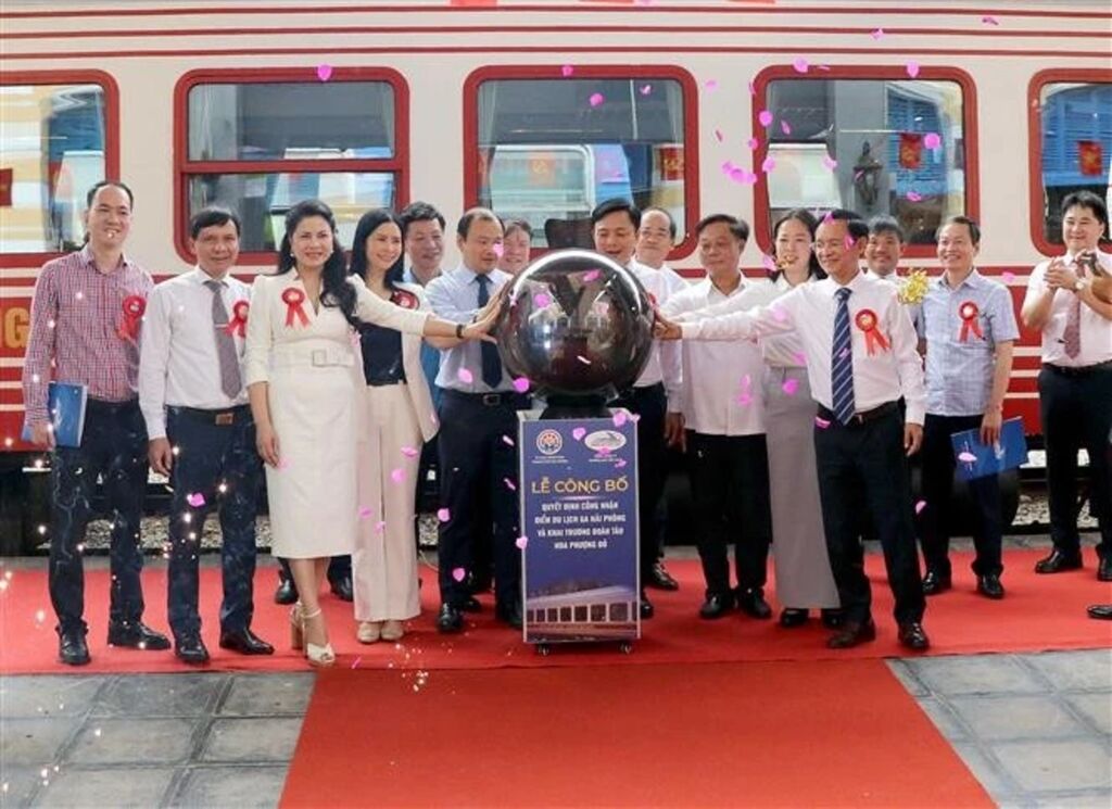 | Cérémonie pour annoncer la reconnaissance de la gare de Hai Phong comme destination touristique et inaugurer un train haut de gamme baptisé Hoa Phuong Do, le 10 mai. |