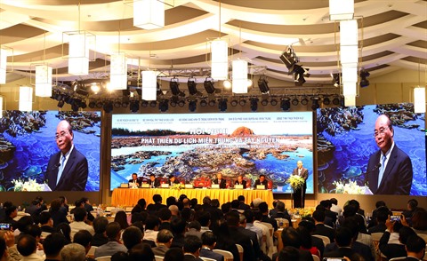 | Le Premier ministre Nguyên Xuân Phuc prend la parole à la conférence sur le développement du tourisme dans le Centre et le Tây Nguyên. |