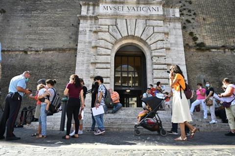 | À l'entrée des musées du Vatican, à Rome, le 6 août |