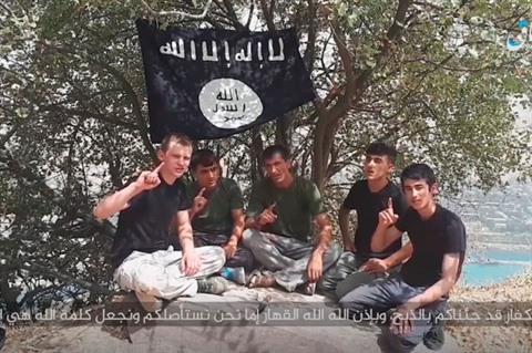| Dans cette vidéo, cinq jeunes hommes assis sous un arbre, sur fond du drapeau du groupe djihadiste, dénoncent l'"occupation" du Tadjikistan. |