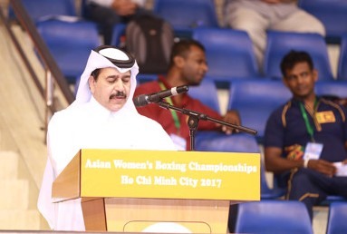 | Yousuf Ali Al Kazim, vice-président de la Fédération de boxe asiatique, lors de la cérémonie d’ouverture du tournoi de boxe féminine d’Asie 2017 à Hô Chi Minh-Ville. |
