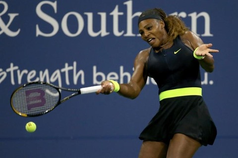 | L'Américaine Serena Williams face à la Grecque Maria Sakkari, lors du tournoi de Cincinnati, à New York le 25 août. |