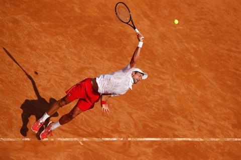 | Novak Djokovic au service face à l'Italien Salvatore Caruso au Masters 1000 de Rome, le 16 septembre. |