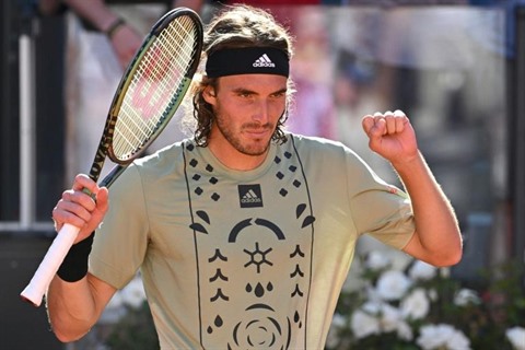 | Stefanos Tsitsipas vainqueur d'Alexander Zverev à Rome, le 14 mai. |