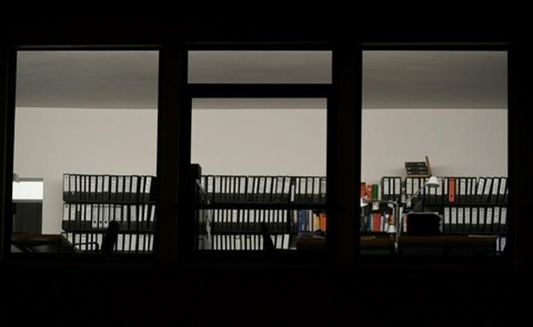 | Des bureaux vides, pour cause d'épidémie de coronavirus, à Cologne, en Allemagne, le 23 mars. |