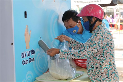 | Un guichet automatique de riz installé à Hô Chi Minh-Ville pour fournir gratuitement du riz aux personnes défavorisées et fortement impactées par l’épidémie. |