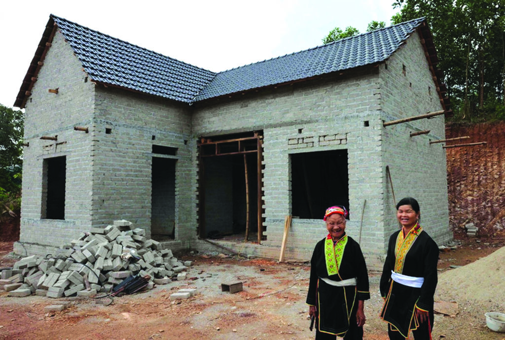 | La joie de la famille de Dang Thi Hà (gauche), de l’ethnie Dao, de la commune de Ngoc My, province de Thai Nguyên (Nord), d’avoir un nouveau logement grâce au soutien financier du gouvernement. |