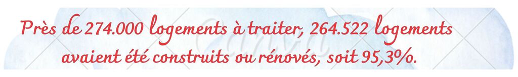 Début juillet 2025, le programme affichait un taux d’avancement remarquable : près de 274.000 logements à traiter, 264.522 logements avaient été construits ou rénovés, soit 95,3%. Parmi eux, 229.328 sont achevés et habités, tandis que 35.194 demeurent en chantier. Surtout, le pays a achevé la construction ou la rénovation de logements pour tous les foyers de personnes méritantes.