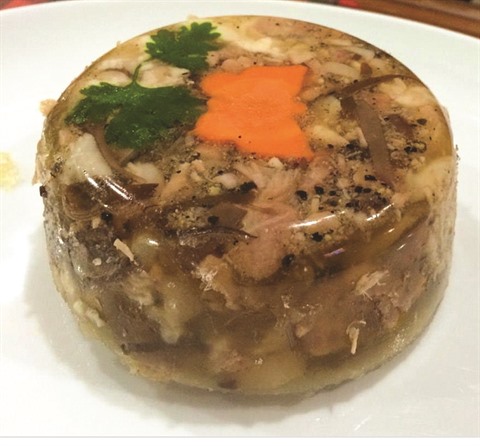 Le thit dông a aussi sa place indispensable pour le Nouvel An lunaire. C’est un plat typique du Nord du pays. Il est à base de jarret et de couenne de porc de champignons noirs ramollis. C’est si bon!
