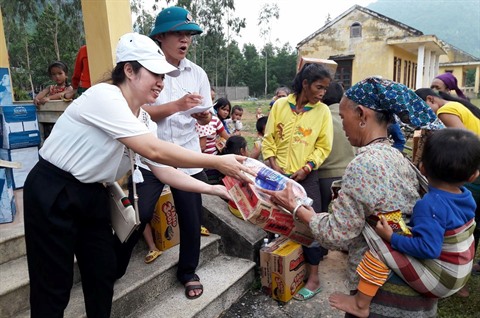 | Les bénévoles donnes les aides humanitaires à la population de la commune de Truong Xuân, district de Quang Ninh, province de Quang Binh. |
