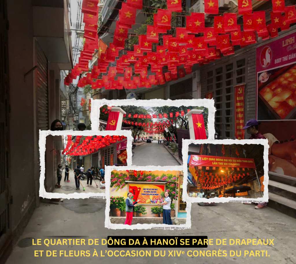 L’élan en direction du XIVe Congrès ne se limite pas aux réunions des cellules du Parti. Il s’exprime aussi avec force dans la vie quotidienne des habitants de la capitale. Dans le quartier de Dông Da, Nguyên Mai Anh, vice-responsable de la Commission de propagande de l’Union de la jeunesse de Hanoï, guide avec entrain les habitants dans l’installation des drapeaux, mêlant drapeaux du Parti et drapeaux nationaux. “Le Congrès du Parti n’est pas une affaire lointaine, confie-t-elle. Pour nous, c’est l’occasion de renforcer la solidarité, la discipline et un mode de vie plus civilisé au sein des quartiers. Nous espérons que le Congrès saura désigner des dirigeants à la fois compétents, courageux et véritablement au service du peuple et du pays”.