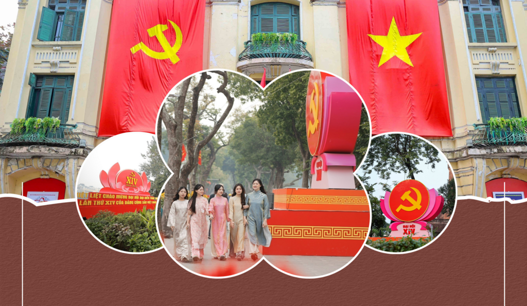 | La capitale Hanoï aux couleurs du XIVe Congrès du Parti. |