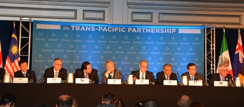 | Conférence de presse des ministres des pays signataires du TPP. |