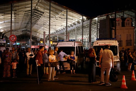 | Des ambulances devant la Gare du Nord le 19 juillet à Paris. |