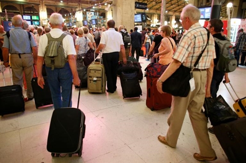 | Des voyageurs le 19 juillet à la Gare du Nord à Paris. |