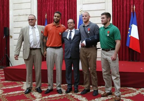 Les Américains Spencer Stone, 23 ans, Alek Skarlatos, 22 ans - deux militaires en vacances - et leur ami Anthony Sadler, 23 ans, devenus des héros planétaires, et le Britannique Chris Norman, 62 ans, ont été "faits chevalier de la Légion d'honneur" par François Hollande.