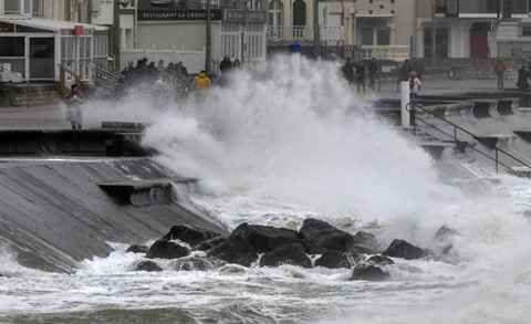 | À Wimereux, dans le Nord-Pas-de-Calais, le 9 février, pendant le passage de la tempête Ciara. |