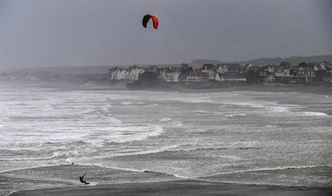 | Un kite-surfer profite du vent très soutenu à Wissant, dans le Nord de la France, le 9 février. |