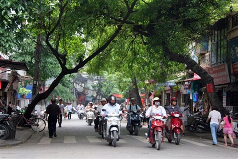 Après avoir échappé à la collision de dizaines de kilos de riz en sacs, destinés au marché Đông Xuân, je profite d’un petit air de liberté sur Yên Phu, tout en gardant un œil vigilant sur les chalands qui ralentissent et s’arrêtent brutalement pour acheter les fruits que des marchandes à vélo, installées sur la rue, proposent en de larges éventaires. Coup de chance, à cette heure, la rue An Duong ne paraît pas trop encombrée, hormis les enfants habituels qui la considèrent comme leur cour de récréation ! L’occasion de vérifier encore une fois l’ingéniosité sans bornes des Vietnamiens.