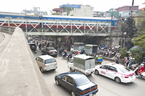 Mais attention, pour prendre l’avenue qui borde la splendide mosaïque du millénaire, ce n’est pas gagné. Il faut que je lutte contre la pression centrifuge de dizaines de véhicules, qui tend à me ramener sur la droite, alors que je veux aller sur la gauche. Une prière à mes ancêtres, un zest d’audace pour passer entre le mufle d’un gros quatre-quatre et l’arrière d’un énorme camion, un peu d’habileté pour éviter de renverser le vélo qui surgit sur ma droite, un rien de technique pour ne pas basculer sur la moto qui me colle à gauche, un coup d’accélérateur, un coup de rein, un coup de chance, et me voilà sorti de la mêlée. Pour autant, ne pas relâcher la pression, notamment en arrivant près du pont Long Biên.
