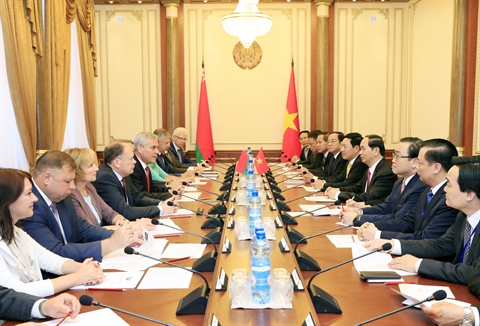 Lors de sa rencontre avec le président de la Chambre des représentants du Bélarus, le chef de l’État vietnamien Trân Dai Quang a déclaré apprécier l’efficacité de la coopération entre les organes législatifs des deux pays, ainsi que leur soutien mutuel au sein de forums interparlementaires. Il a souhaité que le parlement biélorusse favorise la coopération bilatérale et supervise l’application des accords signés par les deux gouvernements. Concernant la création du premier joint-venture dans le secteur automobile, le président Trân Dai Quang a souligné la détermination des deux pays à initier une nette avancée de leurs relations économiques.