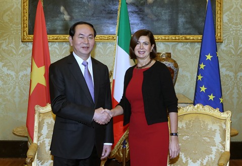 | Le président du Vietnam, Trân Dai Quang, et la présidente de la Chambre des députés d’Italie, Laura Bondrini. |
