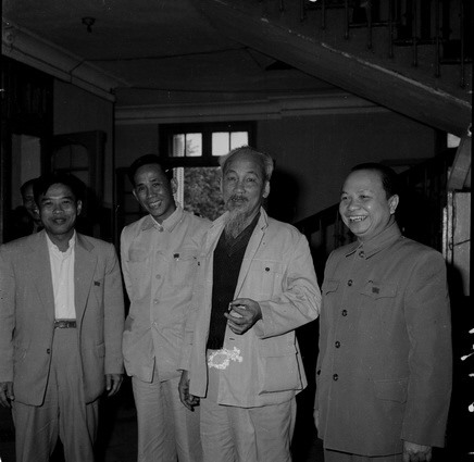| Le Président Hô Chi Minh (2e à droite) et les camarades Truong Chinh (1er à droite), Lê Duân (2e à gauche) et Pham Hùng, lors de la 4e session de la IIe législature de l’Assemblée nationale, en avril 1962. |