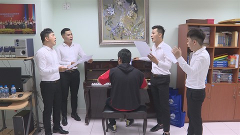 | Une répétition de la chanson "Niêm tin Đai hôi" du groupe Lac Viêt. |