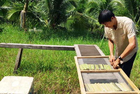 Armé d’Internet, Tiên étudie les méthodes de fabrication de pailles recyclables en tiges de bambou. Il explique: "Les bambous sont très présents à Long An. Leur tige est vide et résistante à l’eau, c’est idéal pour remplacer les pailles en plastique. Mais tous les bambous ne sont pas utilisables. Il faut choisir ceux de couleur rouge, âgés de 5 ou 6 ans".