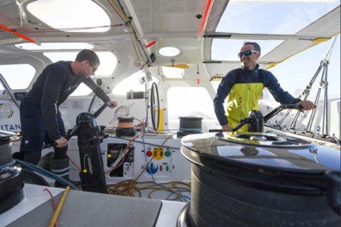 Le duo de skippers, alignés dans la catégorie la plus rapide de la flotte (les Ultimes), présente une belle avance sur ses poursuivants directs (environ 290 milles nautiques soit 537 km), Armel Le Cléach' et Kevin Escoffier (Maxi Banque Populaire XI) mais ils ne s'emballent pas pour autant.