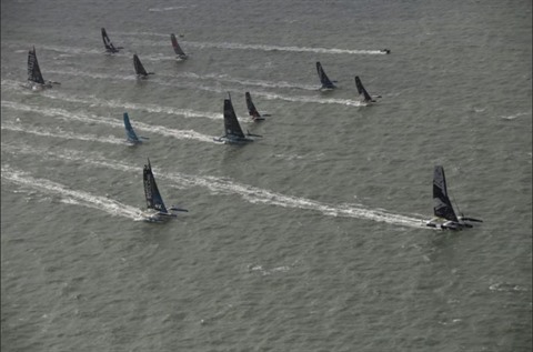 | Les concurrents de la Transat Jacques Vabre au large du Havre le 7 novembre. |