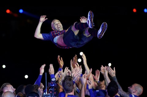 | Le milieu de terrain du FC Barcelone lors de ses adieux le 20 mai au Camp Nou. |