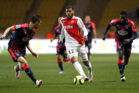 | Le milieu de terrain Farès Bahlouli, alors sous le maillot de Monaco, face à Bordeaux le 1er avril 2016 à Louis-II. |
