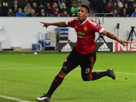 | Anthony Martial, recrue phare de Manchester United, après son but contre le VfL Wolfsburg en Ligue des champions, le 8 décembre 2015 à la Volkswagen Arena. |