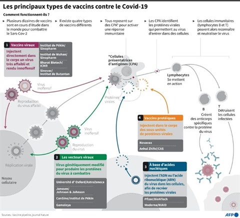 | Infographie sur les principaux types de vaccins existants pour lutter contre un virus. |