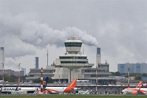 | L'aéroport de Berlin avec des avions d'EasyJet et Ryanair sur le tarmac le 15 octobre. |