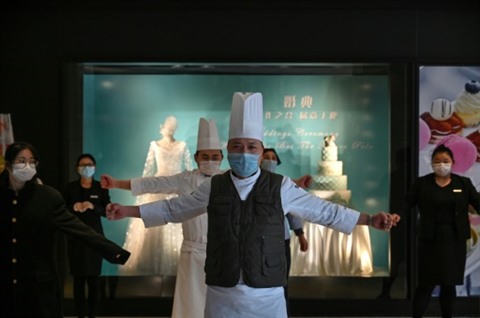 | Des employés d'hôtel lors d'un briefing de sécurité à Wuhan, le 28 janvier. |