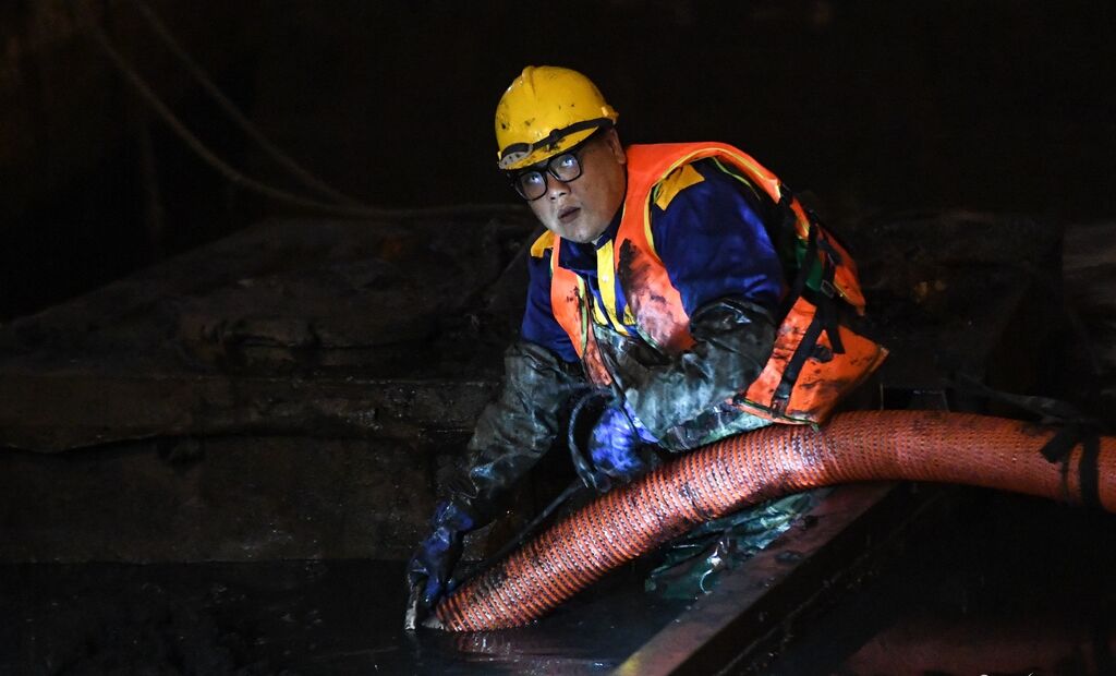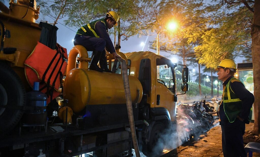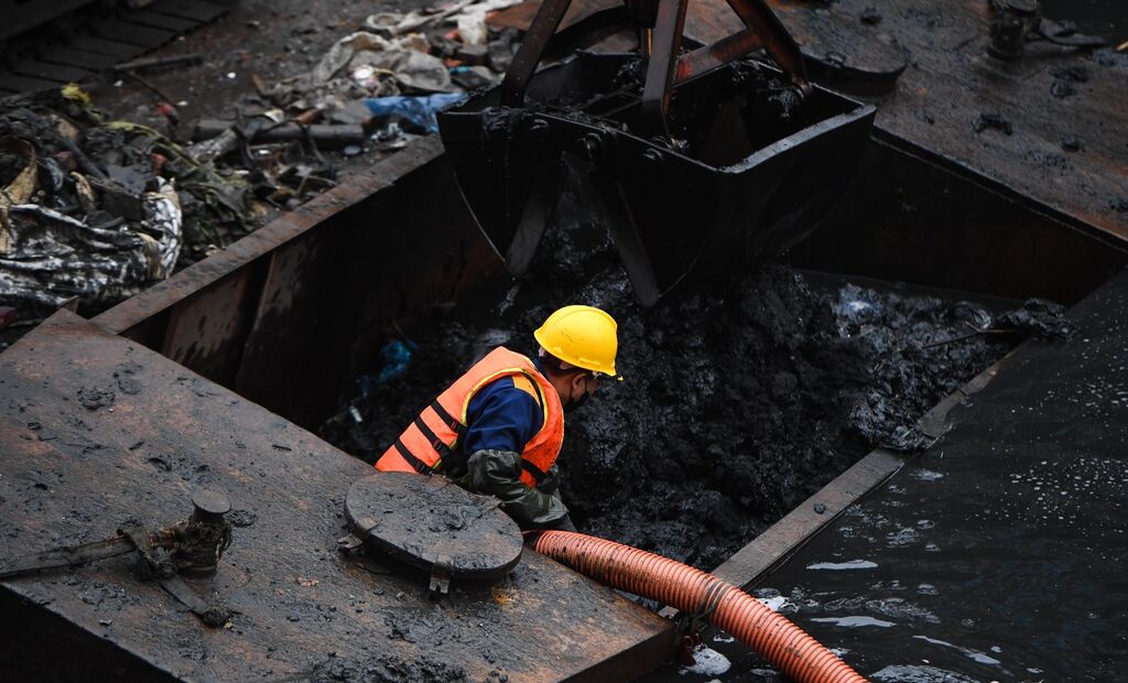 | M. Huy, ouvrier chargé de manipuler les tuyaux d’aspiration, explique que la boue noire contient de nombreux déchets et objets encombrants, nécessitant un tri manuel pour éviter l’obstruction des conduits, ce qui ralentit considérablement l’opération. Les déchets récupérés sont ensuite acheminés vers les centres de traitement. |