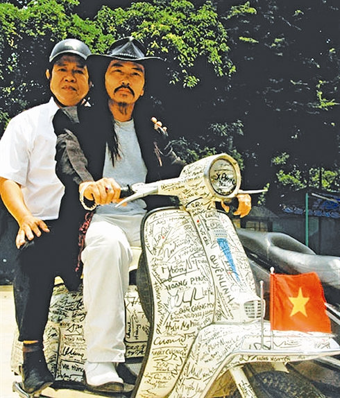 | L'artiste Quang Dat (droite) a une passion pour les voyages transnationaux dont le but est de soutenir les gens malchanceux |