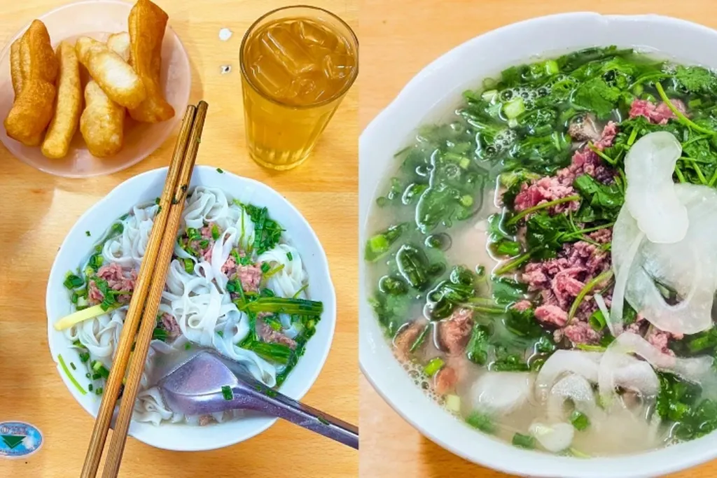 Le menu propose de nombreuses options copieuses, notamment le pho tai nam (soupe au flanc de bœuf), le pho tai (soupe à la viande de bœuf saignante) et le pho chin (soupe à la viande de bœuf bien cuite).