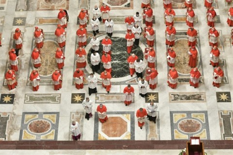 | Des cardinaux lors d'un consistoire pour créer 13 nouveaux cardinaux le 28 novembre dans la basilique Saint-Pierre, au Vatican. |