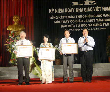 | Trân Thanh Ai (1er à gauche) a reçu en 2012 le titre de Professeur d’excellence. |
