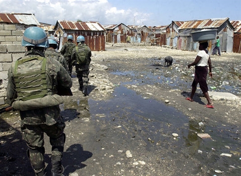 | Des casques bleus à Port-au-Prince, en 2009 |