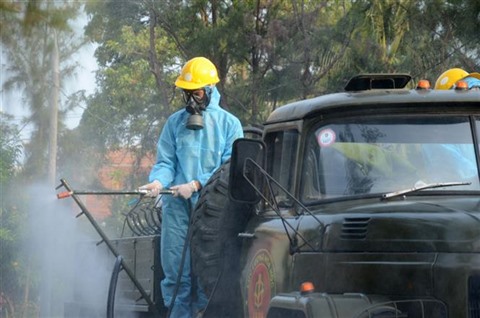 | Désinfection dans la zone industrielle An Dôn, ville de Dà Nang (Centre), le 12 mai. |